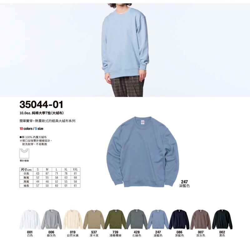 3504401 - 10oz 純棉大學T恤(大絨布) - 001白色